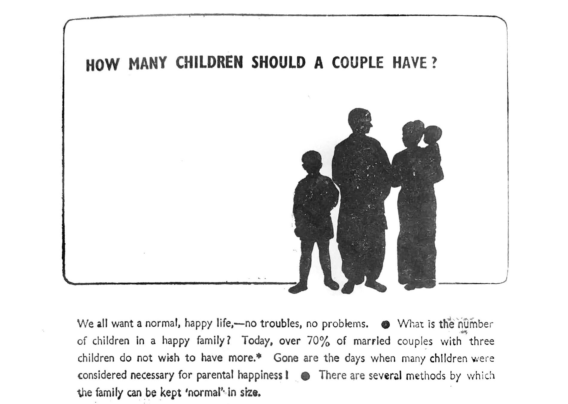 People who want one, please go to a welfare or family planning center. black headline, right calender—let's have the proper number of babies but note that, confusedly, there were also some with two children like those in the 1970s though, and that clearly the government and ppfk were still.